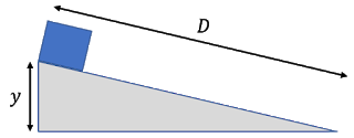 For example, a block is sliding down a rough inclined plane from rest. We want to find out the final speed of the block after it has traveled a distance D along the incline. The block has moved a vertical displacement of y downward.